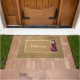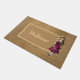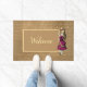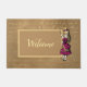 Vintage, getönte Abbildung von Alice aus der Alice im Wunderland durch das Blickglas, in Goldkronen auf ephemera Hintergrund mit anpassbarem "Welcome" Text
