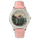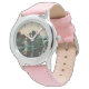 Kinderuhr aus Edelstahl mit rosa Lederarmband