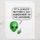 Eine Cartoon Alien leitet Sprichwort, das immer der Tag der Mutter ist irgendwo im Universum.