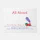Begrüßen Sie Ihre vorbildlichen Zuggeschäftsgäste mit diesem allem an Bord des Choo Choo Zugs, der hinunter die Bahnen Tür-Matte läuft. Clickety Geklapper, das es sich schnell bewegt. Eine bunte illustrierte rote und grüne Dampflokomotive mit dem lila Dampf, der von ihr sich türmt, ist Rauchstapel. Fügen Sie Ihre Informationen auf den bereitgestellten Gebieten hinzu.