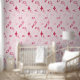 Dieses Tapete zeigt ein modernes atomares Muster aus Diamanten, Rechtecken und Bumerangs in Rosa für einen Retro-Look der 50er Jahre.