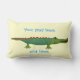 Maßgeschneidertes 13" x 21" hellgelbes Lumbalkissen mit einem Bild eines grünen Alligators mit blauen Polka-Punkten und roten Polka-Punktwaagen. Hellgelber Rücken. Die gesamte Kidz Korner Kissenkollektion finden Sie unter der Rubrik ZUHAUSE im Bereich KIDZ KORNER.