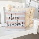 Rosa gestreiftes Kissen im Freien schreit praktisch Sommer mit "Aloha Beach" überlagert in schwarz handgeschriebenen Schriften. Eine perfekte Ergänzung zu Ihrem Pool-, Garten- oder Strandhaus.