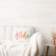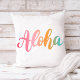 Tropische Typografie-Kissen kennzeichnen die hawaiianische Gruß "Aloha" in einem festlichen Gefälle von Sommerfarben - Rosa, Korallen, Orange und Aqua Blau auf einem weißen Hintergrund.