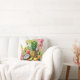 Ein schönes, farbenfrohes Tropenkissen. Mit rosa und gelben Blumen und Ananas Mitte Wasserfarbe.