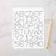 Ein gedrucktes Blatt mit nachvollziehbaren Alphabeten und Zahlen, damit Kinder schreiben lernen können.