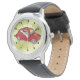 Kinder Edelstahluhr mit schwarzem Lederarmband