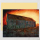Alte rustikal orangefarbene Vintage Scheune bei Sonnenuntergang im Feld eines Bauern. Dieses 110 lb-Papier kann für Ihr Foto-Album, Handwerk oder Entkopplungsprojekte verwendet werden, die schwerere Papiere benötigen. Landhaus-Scrapbook Papier. Bildrecht Marg Seregelyi Fotografie.