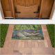 Ein fotografischer amerikanischer Alligator begrüßt Ihre Gäste mit einem spitzen Zahnrad auf dieser Begrüßungstür. Die enge Fotografie des American Alligator of The Florida Everglades scheint mit einem offenen Mund scharfer Zähne zu lächeln. Diese Türmatte "Willkommen in unserem Nacken des Sumpfes" mit nur einem Hinweis auf die Warnung dieses grinsenden Raubtieres wird sicher jedem ein Lächeln auf das Gesicht nach ihrem anfänglichen Schlag. Passen Sie den Text nach Ihren Wünschen an. Das ist die Originalfotografie von JLW_FOTOGRAFIE.