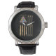Uhr, Vintage Männeruhr mit schwarzem Lederarmband