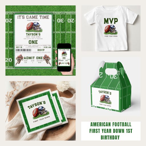 Touchdown! Feiern Sie Ihren ersten Geburtstag mit dieser amerikanischen Football First Year Down Einladung. Mit einem sportlichen Design und einem Fußballthema ist diese Einladung perfekt für den großen Tag Ihres Lebens. Personalisieren Sie es mit Ihren Party-Details und bereiten Sie sich auf eine lustige Feier vor. Egal ob Sie einen Heckgate-Bash oder einen Fußball-Geburtstag veranstalten, diese Einladung Set den Ton. Spiel an!