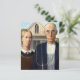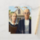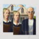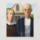 Das ist das klassische Grant-Holzgemälde, amerikanisch-gotisch, das einen Bauer und seine Ehefrau vor ihrem Bauernhaus stehend zeigt, er mit seiner Pitchfork, sie sieht ihn seitlich an.
