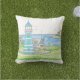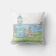 Handgezeichnetes amerikanisches Leuchtturm Außenkissen mit leuchtend zyanblau auf der Rückseite