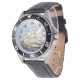 Herrenuhr aus Edelstahl mit schwarzem Lederarmband
