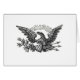 Vintage Schwarzweiss-Illustration des amerikanischen kahlen Adlers, der Pfeile, Eichen-Blätter und ein Schild erfasst.