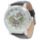 Uhr, Vintage Männeruhr mit schwarzem Lederarmband