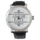 Uhr, Vintage Männeruhr mit schwarzem Lederarmband