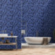 Navy und Amparo Blue Tonal Colorway. Diese grafischen Ananas spielen voneinander ab, um eine moderne Tarnung mit dem Geschmack eines Vintagen Aloha-Shirts zu schaffen. Es gibt andere Zuhause-Dekorationselemente im selben Design. Das Muster kommt in verschiedenen Farben.