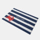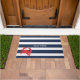 Ein perfektes Zubehör mit blauen und weißen Streifen aus der nautischen Marine mit roter Krabbe und Ihrem Bootsnamen Türmatte.