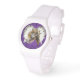 Uhr, Kinderuhr aus Edelstahluhr mit lila Lederarmband