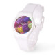 Uhr, Kinderuhr aus Edelstahluhr mit lila Lederarmband