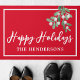Willkommen Familie und Freunde mit diesem Happy Holidays Türmchen. Es ist mit Aquarellmalerei geschmückt, auf einem roten Hintergrund. Einfach anpassbar. Ändern Sie mithilfe des Entwurfstools die Textgröße, den Stil oder die Farbe. Während wir unsere Kunstwerke erstellen, werden Sie diese exakten Bilder von anderen Designern nicht finden. Original Wasserfarbe © Michele Davies.