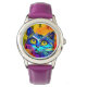 Uhr, Kinderuhr aus Edelstahluhr mit lila Lederarmband