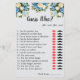 Machen Sie mit unserem speziell für Paare konzipierten Spielblatt "Guess Who?" ein unterhaltsames und interaktives Erlebnis! Dieses wunderschön gestaltete Spielblatt zeichnet sich durch ein zauberhaftes Blumendesign aus und veranlasst die Spieler zu erraten, wer unter ihnen verschiedene Eigenschaften und Fähigkeiten besitzt. Dieses Spiel ist perfekt für Terminabende, Brautpartys oder als einmaliges Geschenk geeignet und fördert das Lachen und die Verbindung. Mit 15 zum Nachdenken anregenden Aussagen können Spieler ihre Antworten sammeln und herausfinden, wie gut sie sich kennen. Machen Sie Ihre besonderen Momente noch unvergesslicher mit diesem schönen Spielblatt!