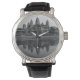 Uhr, Vintage Männeruhr mit schwarzem Lederarmband