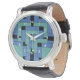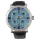 eWatch-Uhren in Anhang, für Männer, Frauen und Kinder, mit weißen Zahlen. Anhang ist ein abstraktes Design von Vexenwraith und besteht aus türkisfarbenen und blauen Blöcken auf schwarzem Hintergrund.