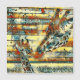 Grafisches Portrait einer Giraffe, die ihren kleinen Jungen küsst, der darüber nicht wirklich glücklich ist...