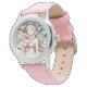 Kinderuhr aus Edelstahl mit rosa Lederarmband