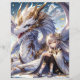 Doppelseitiges Scrapbook-Papier. Ein anime Mädchen und ihr weißer und goldener Drache. Hübsche Manga animiert Fantasiekunst.