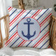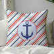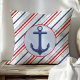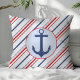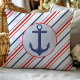 Nautical Navy Blue and Red Stripes Anchor Throw Kissen. Dieses Kissen zeichnet sich durch ein bezauberndes nautisches Design mit roten, weißen und blauen Streifen und einem marineblauen Anker in der Mitte aus. Ideal für die Marine in Ihrem Leben oder für ein Kinderzimmer im Nautical Decor.