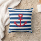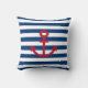 Anker Aweigh mit einem Vintagen Seewurfkissen der blauen Streifen der Marine und des roten Ankers; Vintages Küste-Hütten-Strandhaus-Dekorufer
