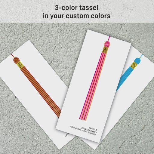 Passen Sie alle Farben einfach an, um sie an die Farben Ihrer Schule, Studienfächer oder Ihre eigene Farbpalette anzupassen. Diese moderne Abschlussanzeige enthält eine auffällige Quaste, die aus fließenden Farbbändern besteht und ein auffälliges zeitgenössisches Design schafft, das an jedes Farbschema angepasst werden kann.