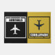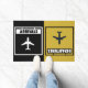 Willkommen Zuhause mit unserer charmanten, einfachen "Ankunft & Abreise" Tür, speziell für Pilotenfamilien oder Flugbegeisterte konzipiert! Diese einzigartige Türmatte zeigt eine anmutige Landung eines Flugzeugs auf der links Seite, gepaart mit einem hängenden Schild, auf dem steht "Ankunft", während ein Flugzeug auf der rechten Seite startet, begleitet von einem hängenden Schild, das "Abflug." Perfekt als Hauswärmespiele oder für die Neuvermählten für ihre Hochzeit. Copyright steigt in Style Designs LLC.