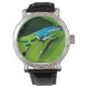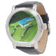 Uhr, Vintage Männeruhr mit schwarzem Lederarmband