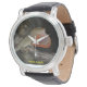 Uhr, Vintage Männeruhr mit schwarzem Lederarmband