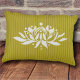 Individuell gestaltbares Kissen mit Lotus-Akzent mit bearbeitbaren Pinstreifen auf Vorder- und Rückseite. Verändern Sie die Farbe der Blume, des Hintergrunds und der Ständer, um dieses Design zu einem einzigartigen Design zu machen. Ideal für Yogastudio, Zen-Scapes oder friedliche Retreates,