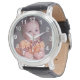 Uhr, Vintage Männeruhr mit schwarzem Lederarmband