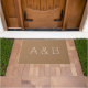 Anpassen, personalisieren des Alphabets in der ersten Monogramm Doormat-weiße Buchstaben, hellbrauner Hintergrund