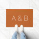 Maßgeschneiderte, personalisierbare Alphabete Anfangsmonogramm Doormat weiße Buchstaben, Ocher Senf brauner orangefarbener Hintergrund