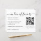 Einführen in unsere exquisite Hochzeitskarte! Diese verzauberte Karte mit minimalistischem und elegantem schwarzem Drehbuch trägt eine herzliche Botschaft. Es lädt Ihre Gäste herzlich ein, an Ihrer Initiative "In anstelle von Favors" teilzunehmen, und symbolisiert die Wichtigkeit des Rückgabens. Erleben Sie die perfekte Mischung aus zeitloser Eleganz und modernster Technologie. Unsere Karte enthält einen personalisierten QR-Code, der Ihnen eine einzigartige und interaktive Erfahrung ermöglicht. Geben Sie einfach die URL Ihres QR-Codeziels ein und beobachten Sie, wie Ihre Gäste in den Einfluss Ihrer gewählten Ursache eingetaucht sind. Die Verwendung eines QR-Codes auf einer "anstelle von favors card" kann je nach Ihren spezifischen Absichten und Zielen variieren. Hier sind einige häufige Verwendungszwecke für einen QR-Code in diesem Zusammenhang: 1- Informationen: Mit einem einfachen Scan können Ihre Gäste auf weitere Details über die Ursache, die Sie unterstützen, zugreifen. Entdecken Sie ihre Mission, verstehen Sie die Auswirkungen, die sie hervorbringt, und erfahren Sie, wie ihre Beiträge genutzt werden. Lass ihnen, auf eine Reise des Wissens und der Inspiration zu gehen. 2- Direkt auf eine Spendenseite: Durch den Power des QR-Codes können die Gäste nahtlos zu Ihrer gewählten Wohltätigkeitsorganisation bzw. zu Ihrer Sache beitragen. Durch die direkte Verknüpfung mit einer Spendenseite wird der Prozess vereinfacht und es wird ihnen ermöglicht, einen sinnvollen Unterschied zu machen. 3- Sagen Sie Geschichten oder Zeugnisse: Tauchen Sie ein in die persönlichen Erzählungen, die die Wichtigkeit Ihrer Sache beleuchten. Verknüpfen Sie den QR-Code mit Videos oder Websites, auf denen berührende Geschichten, herzliche Zeugnisse und inspirierend Erfahrungen zu der Sache gezeigt werden, die Sie unterstützen. Lass, dass ihr Herz bewegt und ihr Geist aufgelockert wird. Alle Textstile, Farben und Größen können an Ihre Bedürfnisse angepasst werden. Wenn Sie Hilfe oder passende Artikel benötigen, zögern Sie bitte nicht, mich zu kontaktieren.