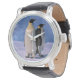 Uhr, Vintage Männeruhr mit schwarzem Lederarmband