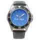 Herrenuhr aus Edelstahl mit schwarzem Lederarmband