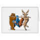 Erfüllte Rotwild und grinsender Bär tragen einen Jäger im Unglauben auf einem hölzernen Pfosten zwischen ihnen! Lustige Anti-Hunting-T - Shirts und -geschenke für Tierliebhaber und die gegen Jagdtiere für Sport!