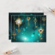 Gold, antike Schlüssel mit Gängen und Dials hängen an goldenen Ketten auf leuchtend grünem Hintergrund.