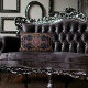 Antikes Design dunkle Akademie Lumbalkissen. © Dunkles Herz Wünsche. Dieses Kissen der Dark Academia hat ein antikes Design in Purpur und Gold und Schwarz.
