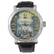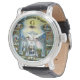 Uhr, Vintage Männeruhr mit schwarzem Lederarmband